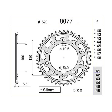 CORONA DA 42 DENTI IN ACCIAIO CEMENTATO PASSO ORIGINALE 520 APRILIA RS 125 (2006-2011) Rullo caten..