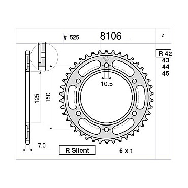 CORONA DA 42 DENTI IN ACCIAIO PASSO ORIGINALE 525 per YAMAHA R1 (2015>)