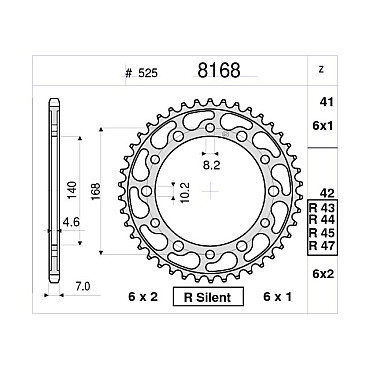 CORONA DA 42 DENTI IN ACCIAIO CEMENTATO PASSO ORIGINALE 525 HONDA CBR 600 RR